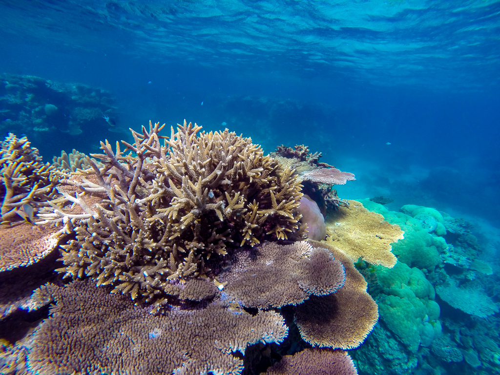 Different depictions of coral reefs and climate change – bleached coral versus reef fantasies at the airport! (Underwater shots 📷 GoPro Hero3+, 2.7mm f/2.8 1/430sec ISO100; Airport image: 📷 OM-D EM1 II, M.Zuiko 12-40mm f/6.3 1/400sec ISO200)