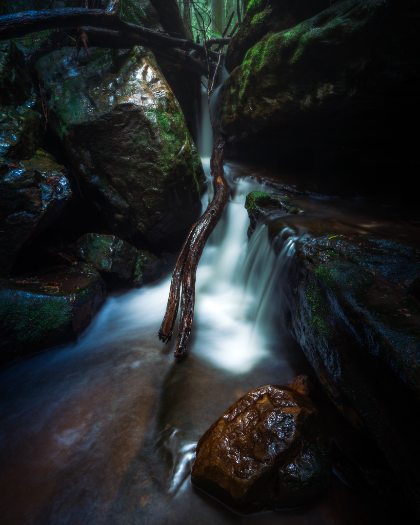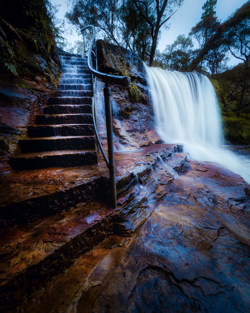 Being based on the northern beaches of Sydney, I’ve been keen to find waterfalls in my local area, as well as travel a bit further afield visiting well known falls in the Blue Mountains and Central Coast. This usually requires a bit of research. Beyond noting waterfalls others have shot on social media, I’ve been using Google Maps to tag potential locations and apps like AllTrails to navigate the sometimes lengthy and rough bushwalks needed to get to the more unknown ones! I also create online notes about different locations, navigation tips, best seasons and times of day in Evernote, so I can source these later out in the field.